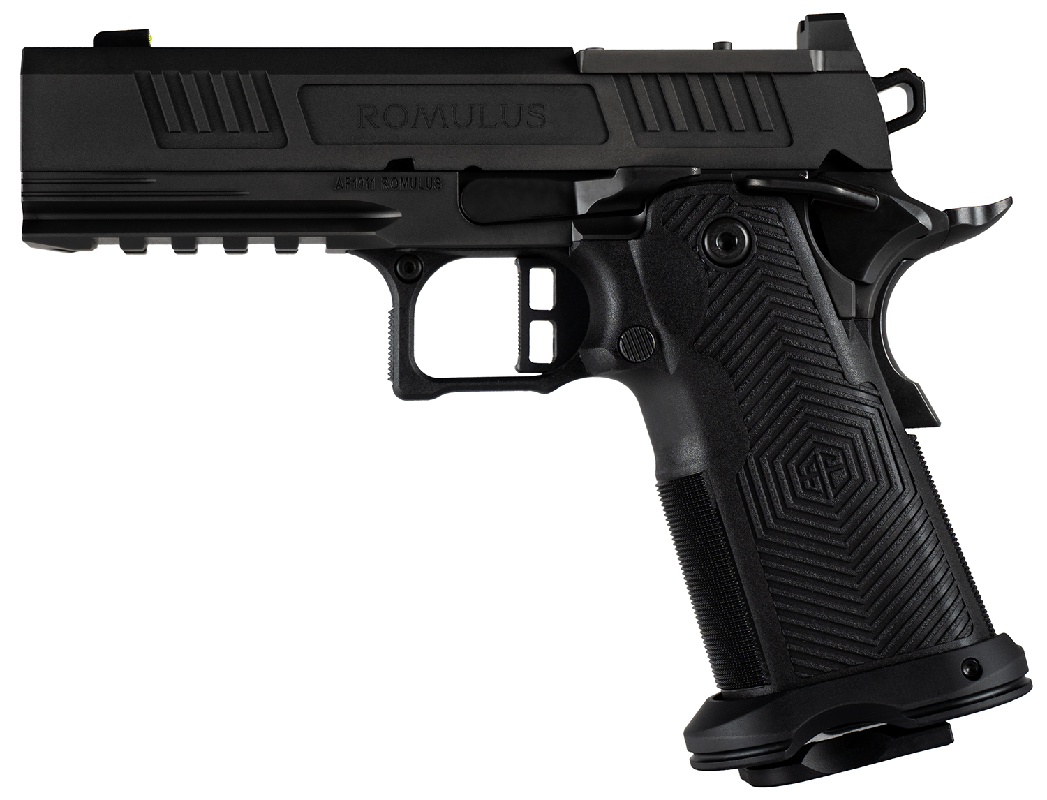 The AF1911 Romulus delivers full-size performance with Alpha Foxtrot’s modern 2011-style engineering. Featuring a black polished DLC finish on the frame and slide; Bull barrel; Night Fision sight; Picatinny rail; ambidextrous thumb safety; flared magwell and is RMSC/RMR optics cut. Includes MOS adapter plate, RMSC and RMR plate, 17rd and 20rd magaine.