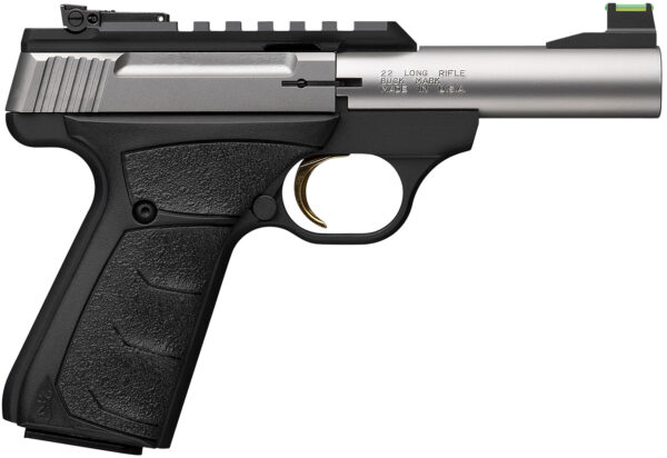 The Browning Buck Mark Plus single-action, blowback operated autoloading design is one of simplicity and reliability. The controls are easy to reach and use. Features an alloy frame; top Picatinny rail; UFX grips feature overmolded rubber panels. The Pro-Target rear sight features 16-clicks per revolution and a green fiber-optic front sight. Includes magazine and pistol rug.