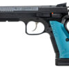 CZ, Shadow 2, Double Action/Single Action, Semi-automatic, Metal Frame Pistol, Full Size, 9MM, 4.89″ Barrel, Steel, Black, Blue Aluminum Grips, Fiber Optic Front and Black Serrated Adjustable Rear Sight, Ambidextrous Safety, 19 Rounds, 3 Magazines, Optic Ready