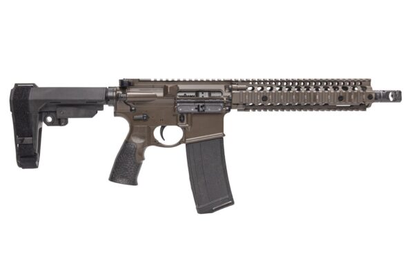 The DANIEL DEFENSE MK18 5.56mm NATO AR-15 Pistol is unmatched in size, weight, and performance, and features the picatinny quad rail Daniel Defense provides to USSOCOM. The RIS II picatinny quad rail features a Bolt-Up System that has been rigorously tested prior to fielding by USSOCOM. The 10.3 inch Cold Hammer Forged barrel is the same length in use for the MK18 upper most commonly used for CQB operations. The independently ambi GRIP-N-RIP Charging Handle accommodates left- and right-handed shooters. This rifle also comes with the ergonomic Daniel Defense Buttstock and Pistol Grip.