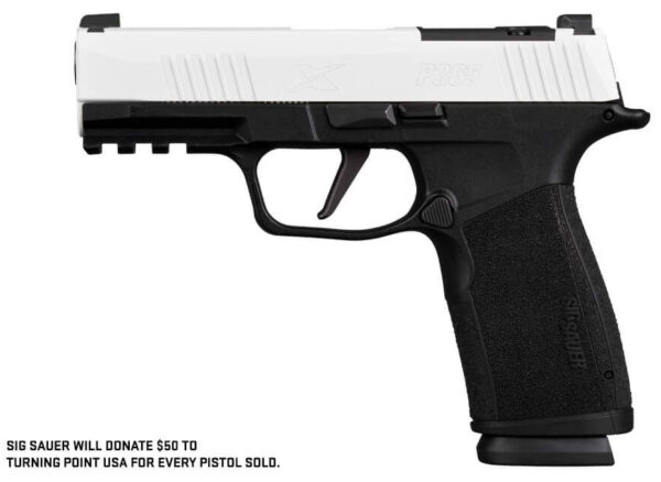 SIG SAUER is proud to present the limited-edition Freedom Series. This unique set of pistols has been created to pay tribute to the commitment and conviction of Turning Point USA. Available in both a 1911 XFull and XCarry size or the popular P365-XMACRO each features a white Cerakote slide engraved with the word Freedom and an American flag. For every Freedom pistol sold SIG SAUER will donate $50 to Turning Point USA to help ensure the fight continues. – P365-XMACRO Features: – SIG SAUER will be Donating $50.00 to Turning Point USA for Each Pistol Sold – Special Freedom and Flag Engraving on White Cerakote 1911 Full Size Optic-Ready Slide – Custom G10 Grip Panels from LOK Grips – Stainless Steel Frame with Undercut and Removable Magazine Well – P-Series XRAY3 Day/Night Sights – (2) 8rd Magazines – CALIBER 9mm Luger – PISTOL SIZE Compact – MAGS INCLUDED (2) 17rd Steel Mag – SIGHTS XRAY3 Day/Night Sights – OPTIC READY Yes – RX FOOTPRINT COMPACT (Shield RMS-c) – SIGHT RADIUS 5.2 in – SLIDE FINISH White Cerakote With Engraving – SLIDE MATERIAL Stainless Steel – ELECTRO-OPTIC INSTALLED No – TRIGGER ACTION Striker – TRIGGER TYPE Flat Striker Fired – MANUAL SAFETY No – GRIP MODULE XMACRO Polymer – GRIP TYPE Polymer – GRIP COLOR Black – ACCESSORY RAIL M1913 – FCU MATERIAL Stainless Steel – BARREL LENGTH 3.7 in [93.98 mm] – THREADED BARREL No – BARREL MATERIAL Carbon Steel – OVERALL LENGTH 6.6 in [168 mm] – OVERALL WIDTH 1.1 in [28 mm] – HEIGHT 4.9 in – WEIGHT 21.8 oz